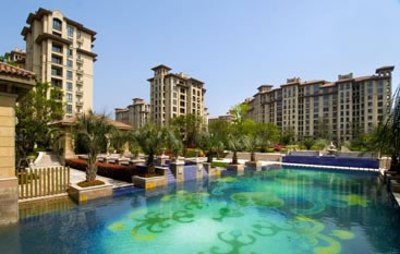 地中海高层公寓系列产品采用了一些热带度假公寓的建筑特征:大挑檐,丰富的屋顶轮廓线,宽大的阳台,尺寸宜人的架空空间,明亮温暖的色彩等。而在立面的处理上,则延续了一贯庄重、清新的新古典主义风格。这些处理手法意在创造一种轻松宜人的居住氛围,打破一般高层建筑单调、呆板的建筑形象。